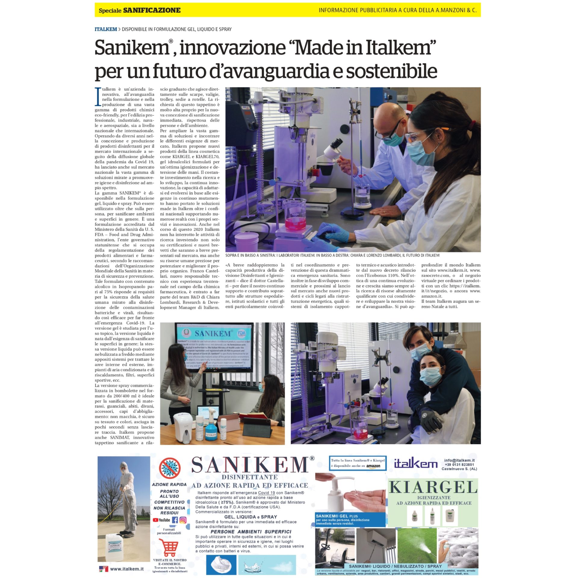 » News » Sanikem®, innovazione “Made in Italkem” su La Stampa & La Repubblica 15 Dicembre